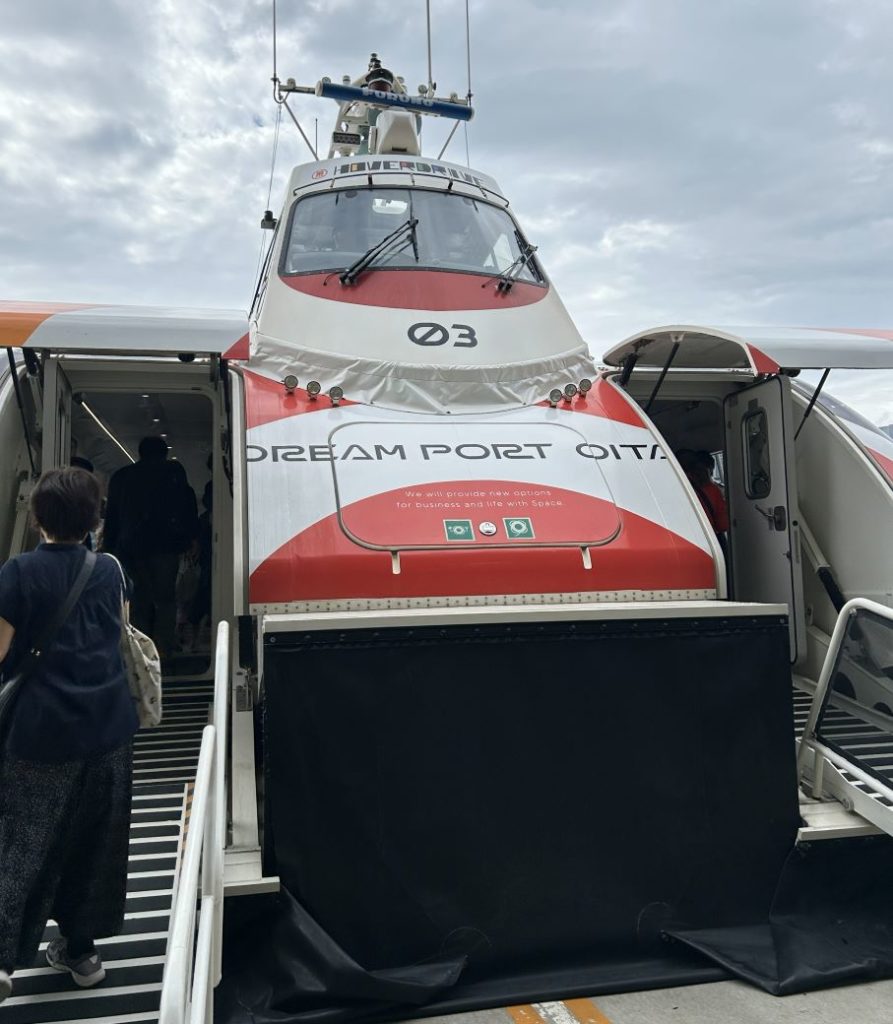 福岡・天神から高速バスで約2時間で大分駅へ。ちょうど試験的に駅〜ホバーターミナル間の送迎バスがあり、20分ほどで乗り場に到着しました。